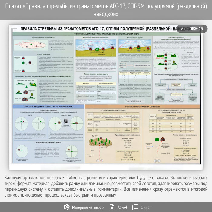 Плакат «Правила стрельбы из гранатометов АГС-17, СПГ-9М полупрямой (раздельной) наводкой» (ОБЖ-13, 1 лист) в Бердске купить