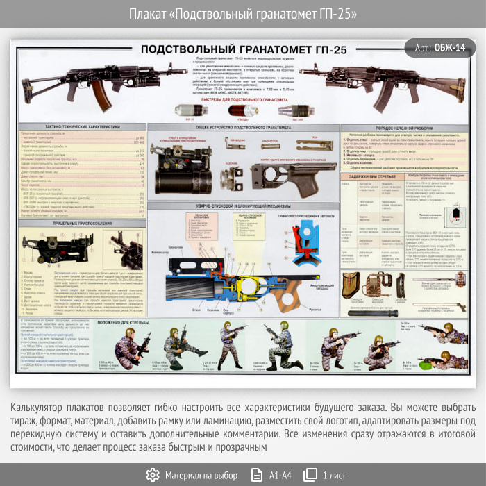Плакат «Подствольный гранатомет ГП-25» (ОБЖ-14, 1 лист) в Бердске купить