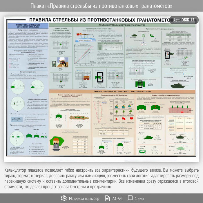 Плакат «Правила стрельбы из противотанковых гранатометов» (ОБЖ-15, 1 лист) в Бердске купить