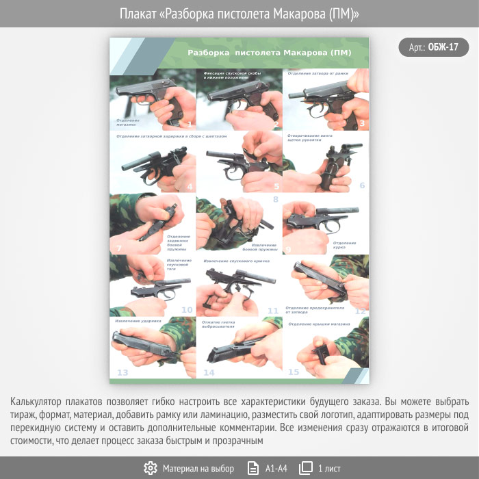 Плакат «Разборка пистолета Макарова (ПМ)» (ОБЖ-17, 1 лист) в Бердске купить