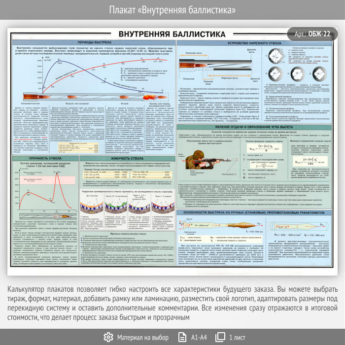 Плакат «Внутренняя баллистика» (ОБЖ-22, 1 лист) в Бердске купить