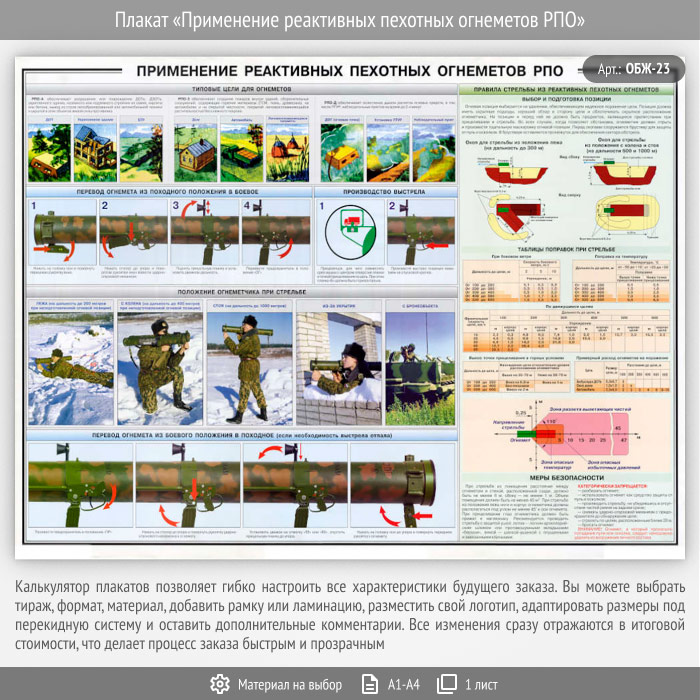 Плакат «Применение реактивных пехотных огнеметов РПО» (ОБЖ-23, 1 лист) в Бердске купить