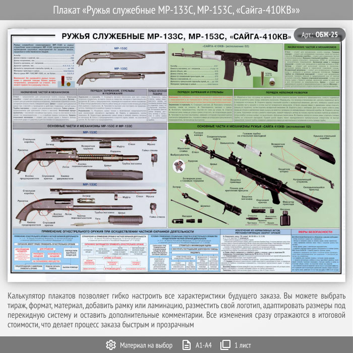Плакат «Ружья служебные МР-133С, МР-153С, «Сайга-410КВ»» (ОБЖ-25, 1 лист) в Бердске купить