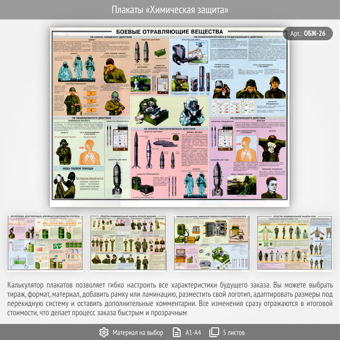 Плакаты «Химическая защита» (ОБЖ-26, 5 листа) в Бердске купить