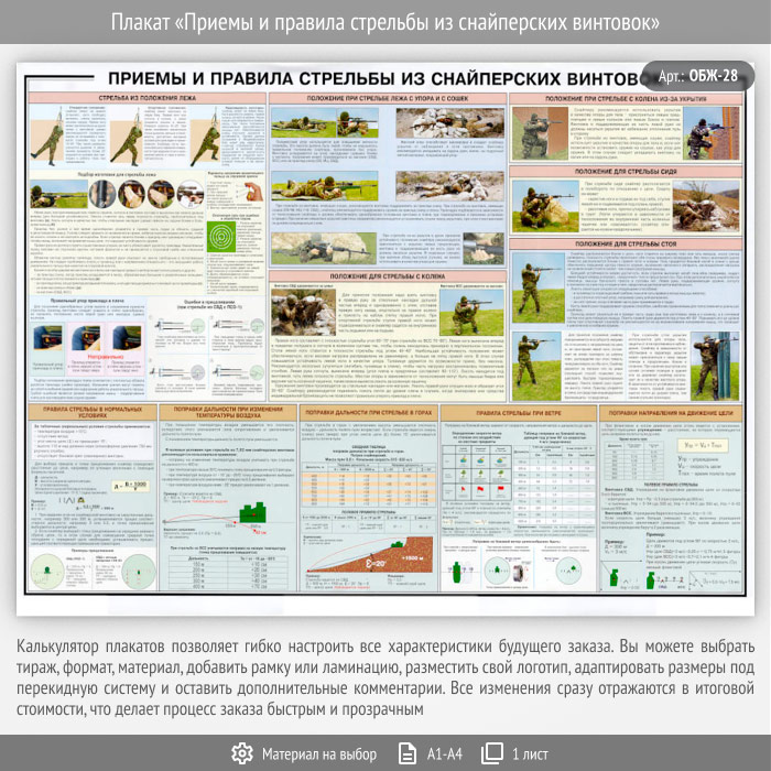 Плакат «Приемы и правила стрельбы из снайперских винтовок» (ОБЖ-28, 1 лист) в Бердске купить
