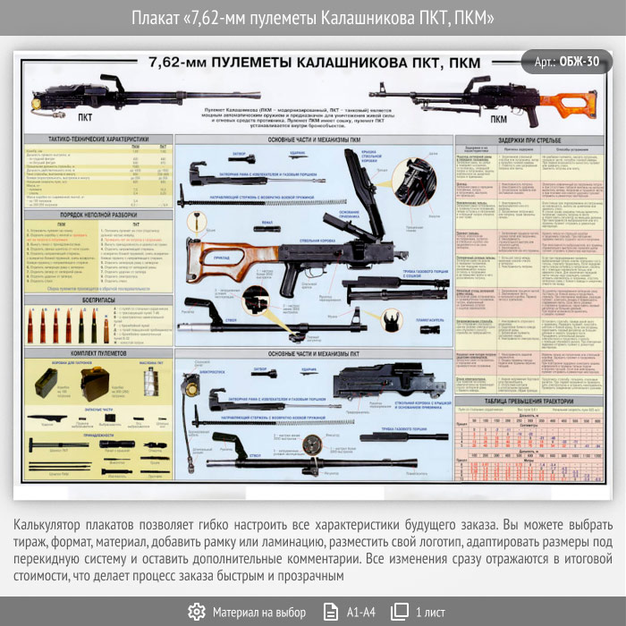 Плакат «7,62-мм пулеметы Калашникова ПКТ, ПКМ» (ОБЖ-30, 1 лист) в Бердске купить