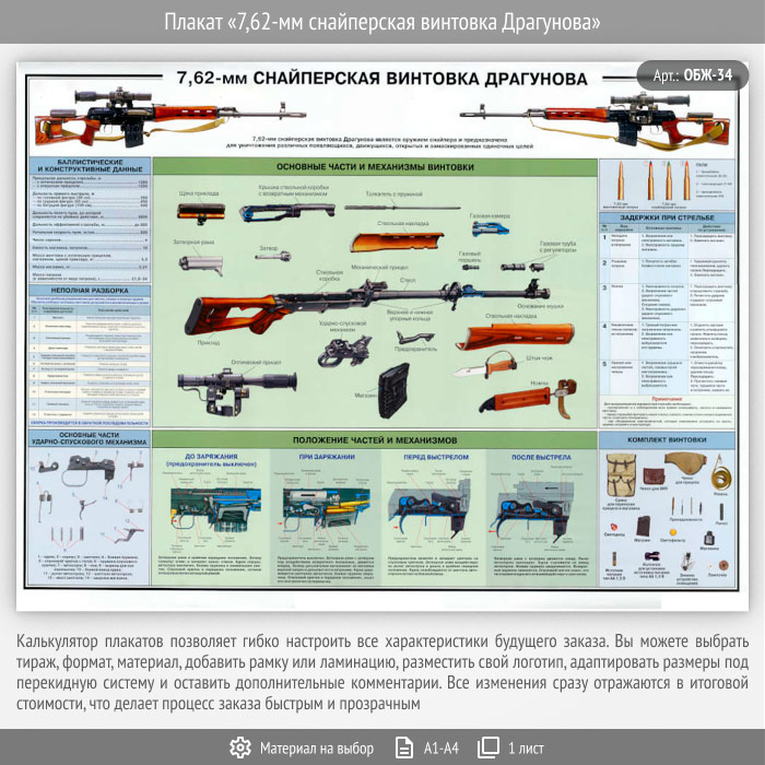Плакат «7,62-мм снайперская винтовка Драгунова» (ОБЖ-34, 1 лист) в Бердске купить