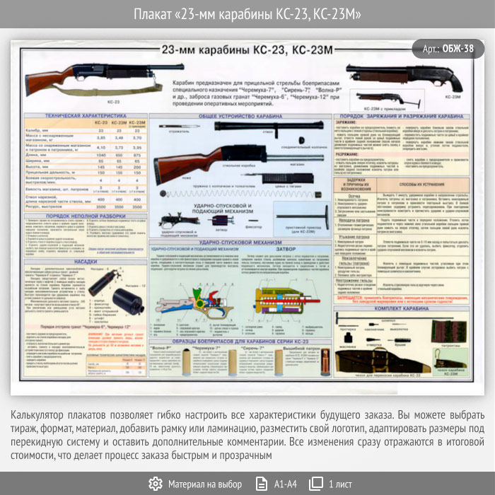 Плакат «23-мм карабины КС-23, КС-23М» (ОБЖ-38, 1 лист) в Бердске купить