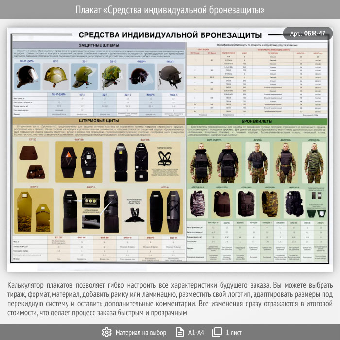 Плакат «Средства индивидуальной бронезащиты» (ОБЖ-47, 1 лист) в Бердске купить