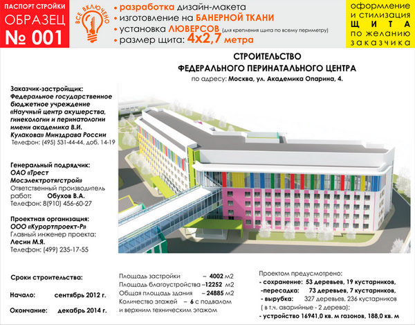 Паспорт стройки, образец № 1 (баннерная ткань, 4000х2700 cм) в Бердске купить
