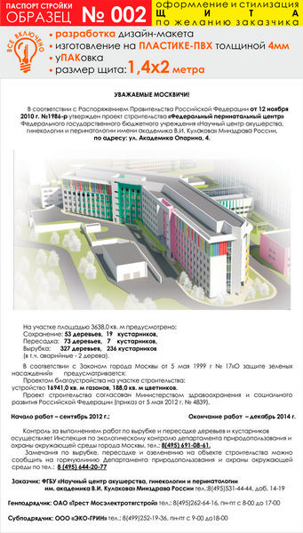 Паспорт стройки, образец № 2 (пластик 4 мм, 1400х2000 cм) в Бердске купить