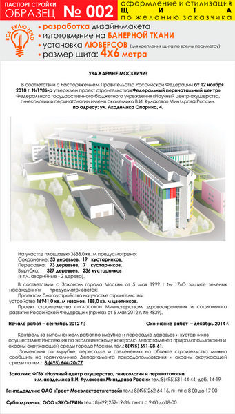 Паспорт стройки, образец № 2 (баннерная ткань, 4000х6000 см) в Бердске купить