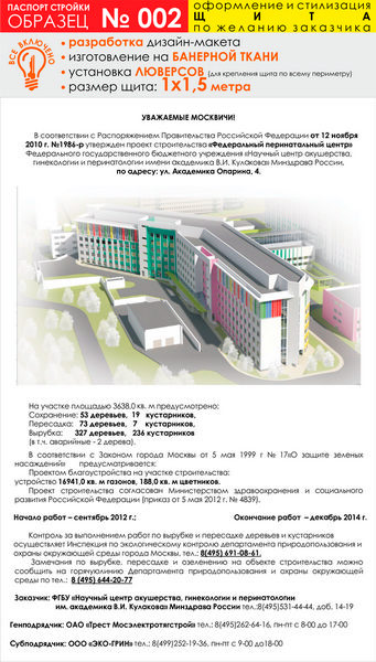 Паспорт стройки, образец № 2 (баннерная ткань, 1000х1500 cм) в Бердске купить