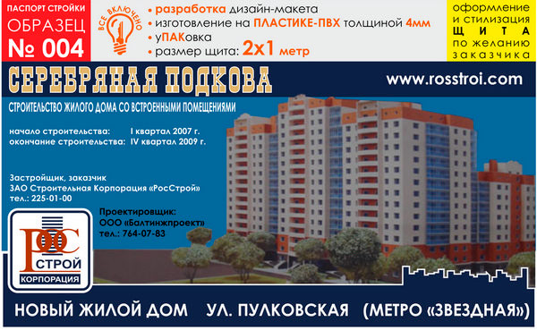Паспорт стройки, образец № 4 (пластик 4 мм, 2000х1000 cм) в Бердске купить