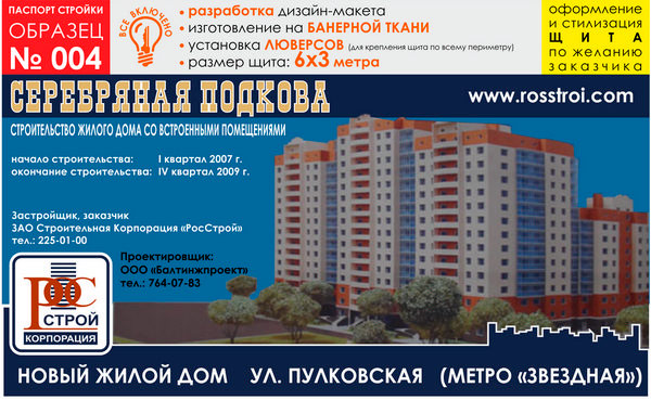 Паспорт стройки, образец № 4 (баннерная ткань, 6000х3000 cм) в Бердске купить