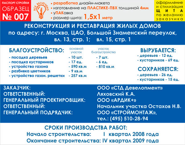 Паспорт стройки, образец № 7 (пластик 4 мм, 1500х1000 cм) в Бердске купить