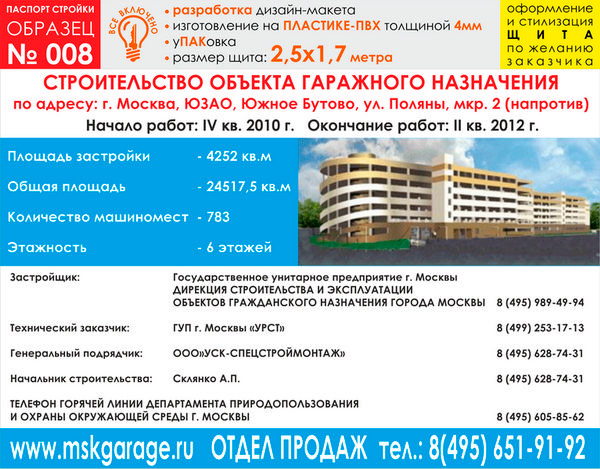 Паспорт стройки, образец № 8 (пластик 4 мм, 2500х1700 cм) в Бердске купить