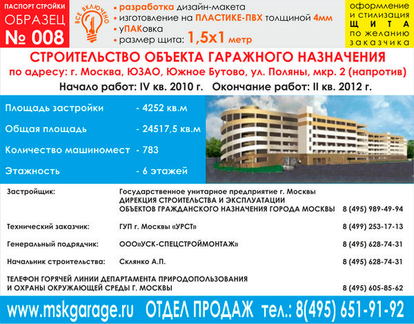 Паспорт стройки, образец № 8 (пластик 4 мм, 1500х1000 cм) в Бердске купить