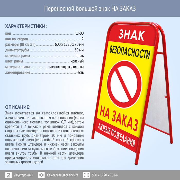 Переносной большой знак НА ЗАКАЗ (двусторонний, самоклеящаяся пленка) в Бердске купить