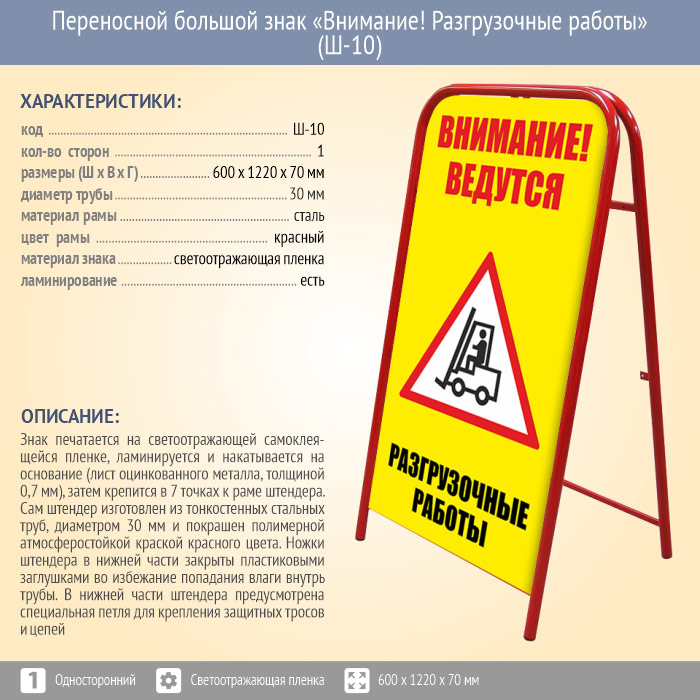 Переносной большой знак «Внимание! Разгрузочные работы» (Ш-10, двусторонний, светоотражающая пленка) в Бердске купить