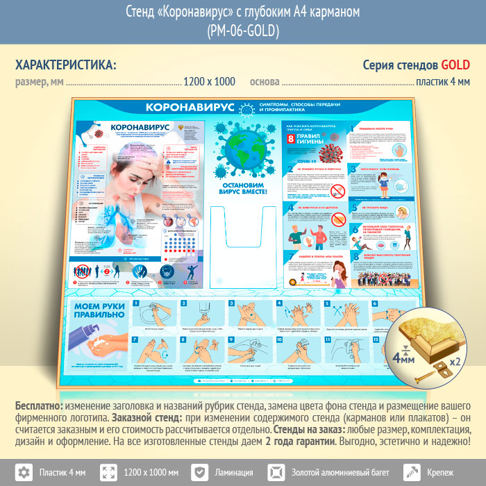 Стенд «Коронавирус» с глубоким А4 карманом (PM-06-GOLD) в Бердске купить