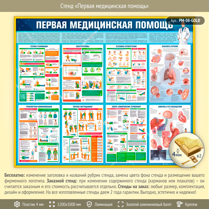 Стенд «Первая медицинская помощь» (PM-08-GOLD) в Бердске купить