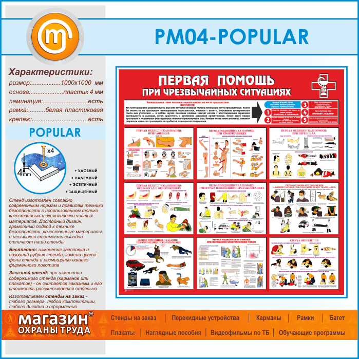 Стенд «Первая помощь при чрезвычайных ситуациях» (PM-04-POPULAR) в Бердске купить