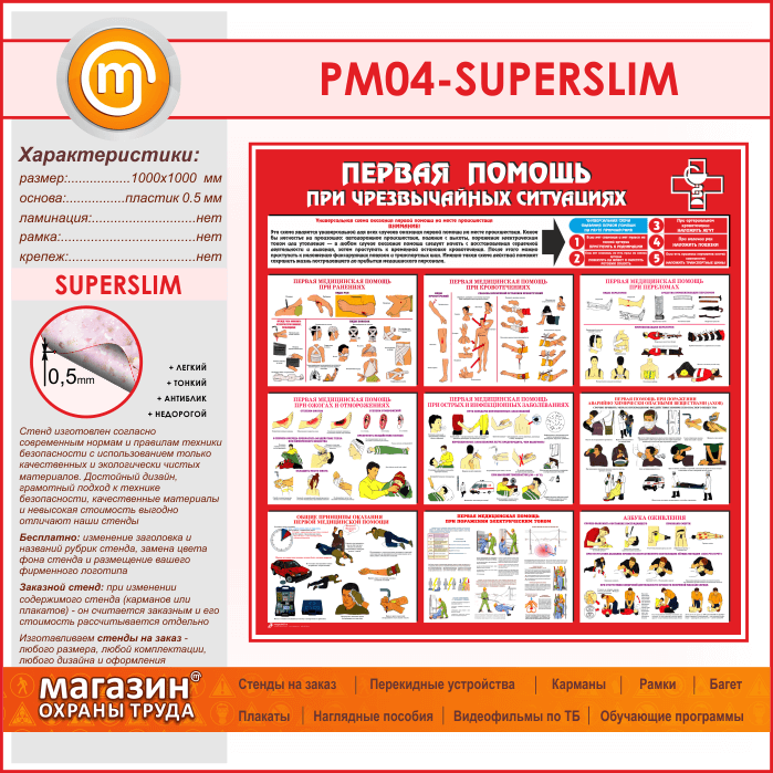 Стенд «Первая помощь при чрезвычайных ситуациях» (PM-04-SUPERSLIM) в Бердске купить