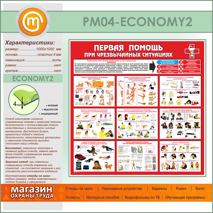 Стенд «Первая помощь при чрезвычайных ситуациях» (PM-04-ECONOMY2) в Бердске купить