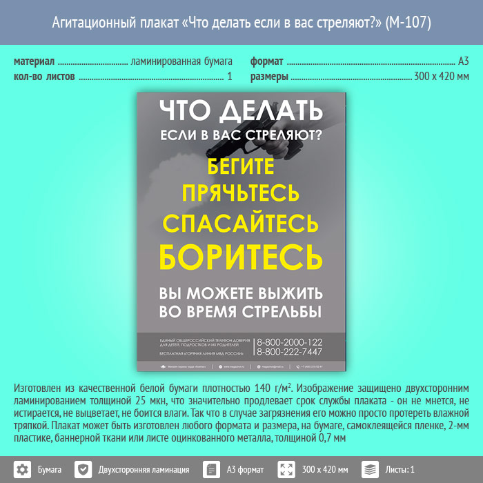 Плакат «Что делать если в вас стреляют?» (М-107, ламинированная бумага, А3, 1 лист) в Бердске купить