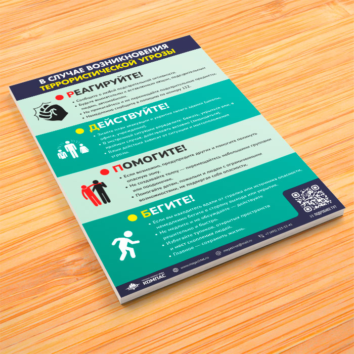 Плакат «В случае возникновения террористической угрозы» (М-109, ламинированная бумага, А3, 1 лист) в Бердске купить