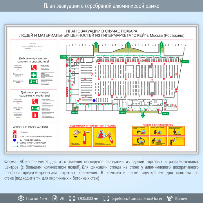 План эвакуации в серебряной алюминиевой рамке (А0 формат) в Бердске купить