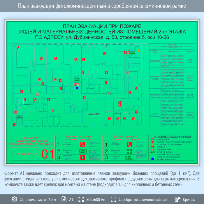 План эвакуации фотолюминесцентный в серебряной алюминиевой рамке (А1 формат) в Бердске купить