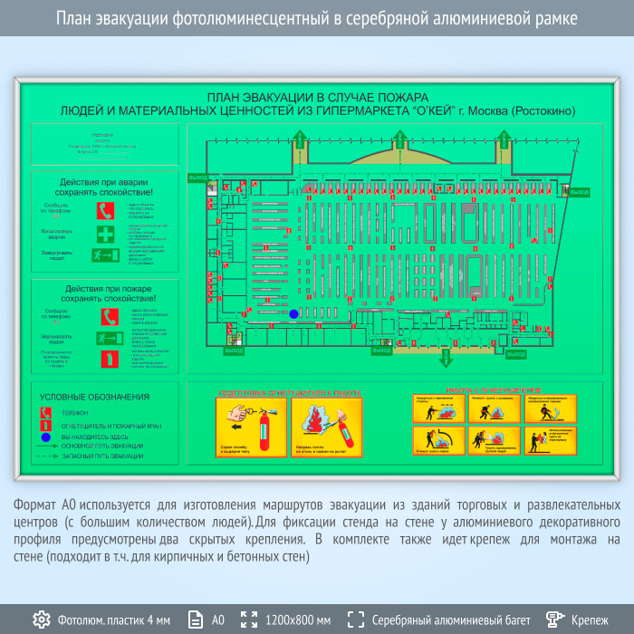 План эвакуации фотолюминесцентный в серебряной алюминиевой рамке (А0 формат) в Бердске купить