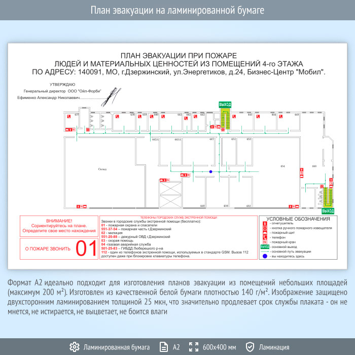 План эвакуации на ламинированной бумаге (А2 формат) в Бердске купить