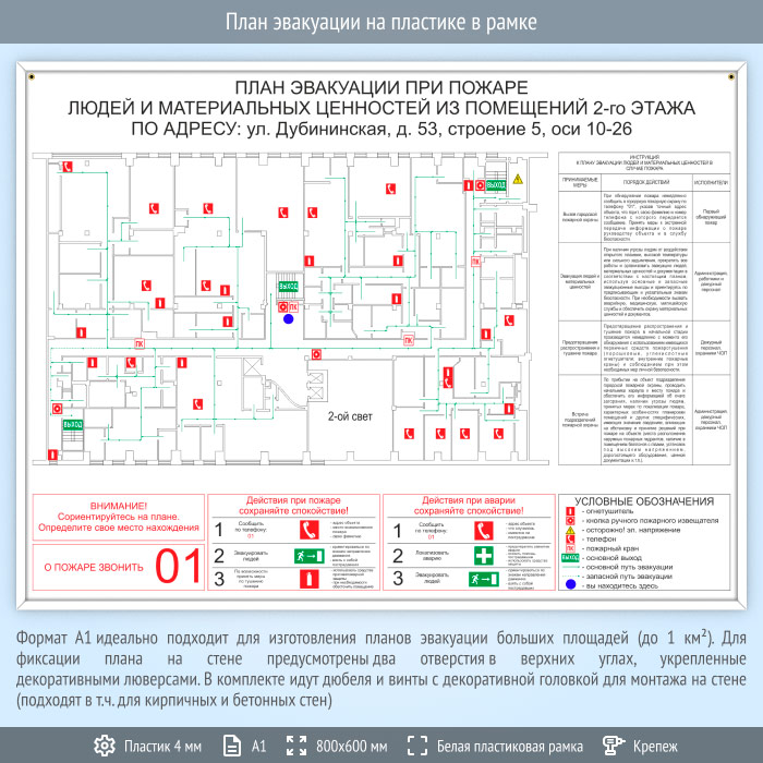 План эвакуации на пластике в рамке (А1 формат) в Бердске купить