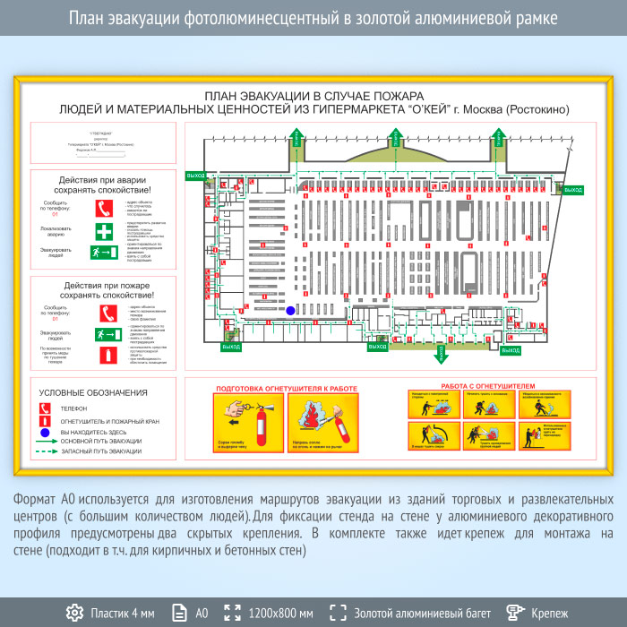 План эвакуации в золотой алюминиевой рамке (А0 формат) в Бердске купить