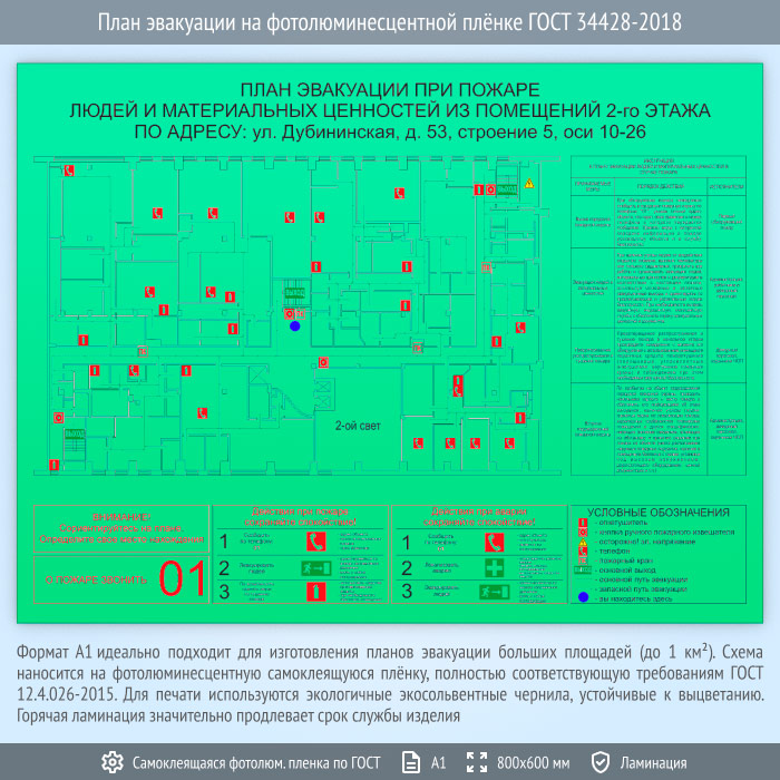 План эвакуации на фотолюминесцентной плёнке ГОСТ 34428-2018 (А1 формат) в Бердске купить