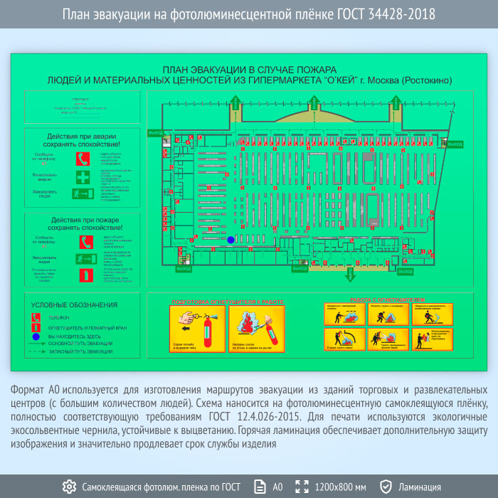 План эвакуации на фотолюминесцентной плёнке ГОСТ 34428-2018 (А0 формат) в Бердске купить