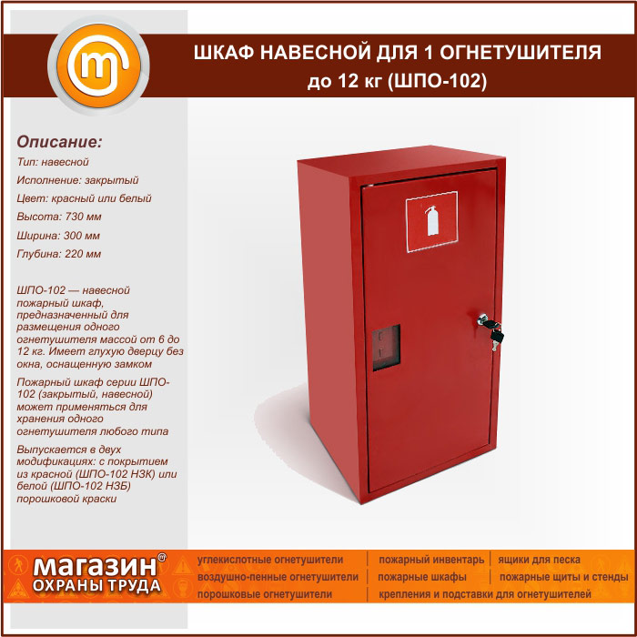 Шкаф пожарный ШПО-102 навесной для 1 огнетушителя до 12 кг в Бердске купить