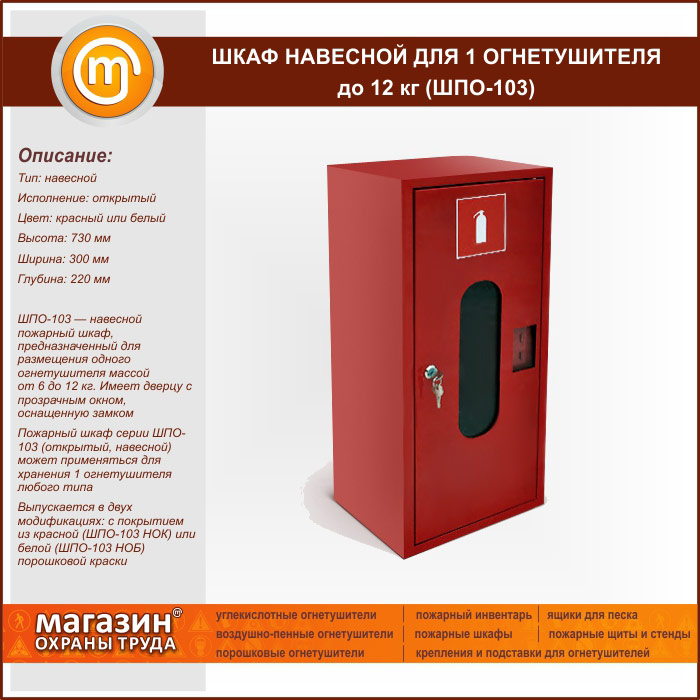 Шкаф пожарный ШПО-103 навесной для 1 огнетушителя до 12 кг в Бердске купить