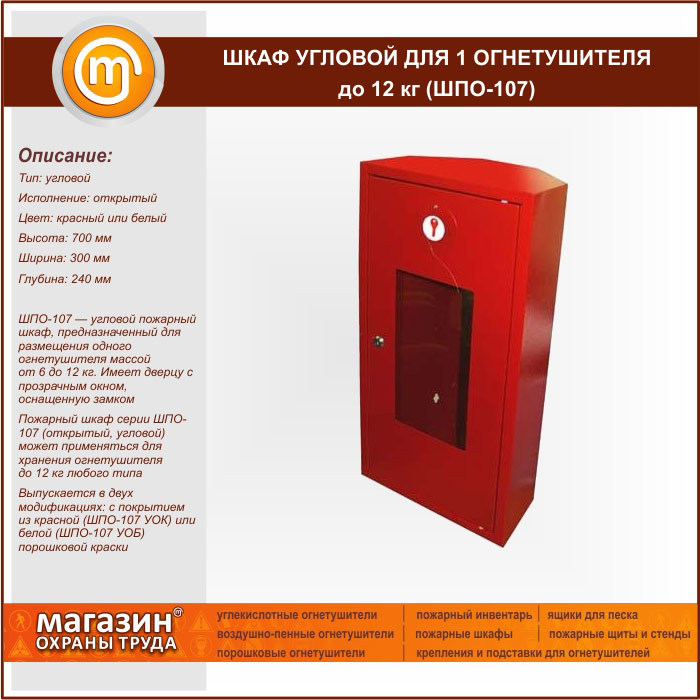 Шкаф пожарный ШПО-107 угловой для 1 огнетушителя до 12 кг в Бердске купить