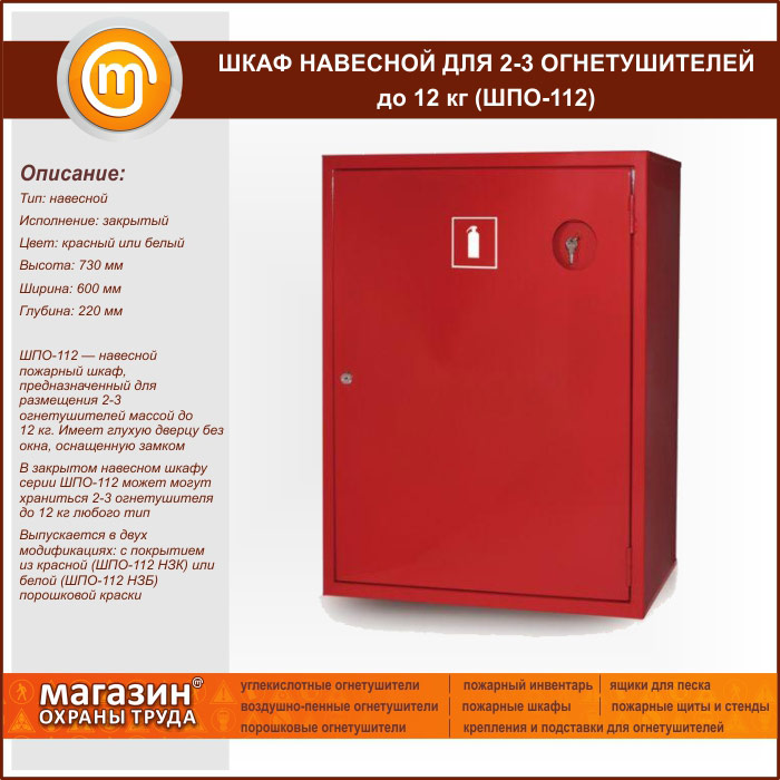 Шкаф пожарный ШПО-112 навесной для 2-3 огнетушителей до 12 кг в Бердске купить