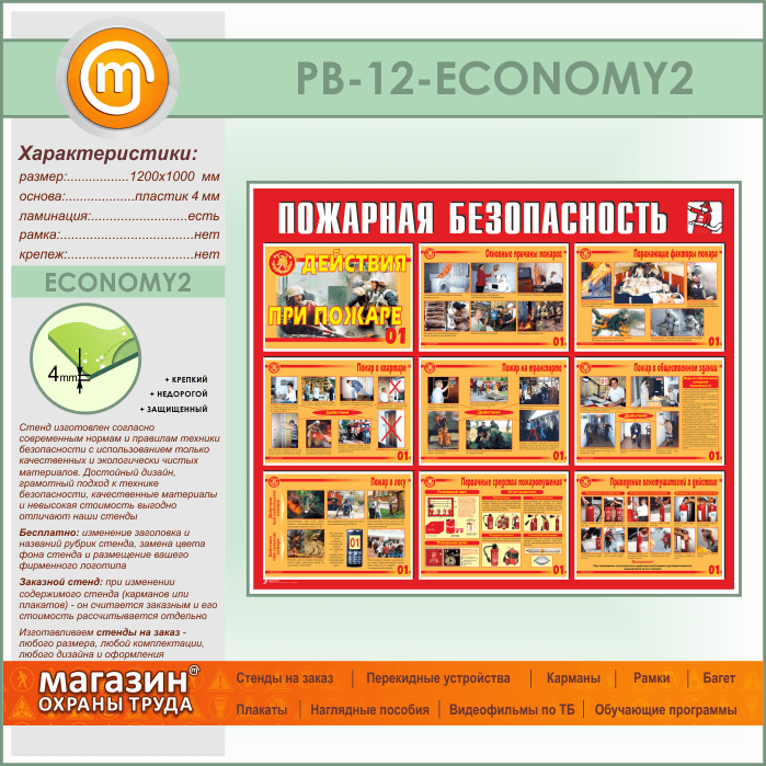 Стенд «Пожарная безопасность. Действия при пожаре» (PB-12-ECONOMY2) в Бердске купить