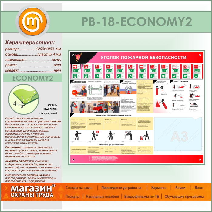 Стенд «Уголок пожарной безопасности» с карманом А3 формата (PB-18-ECONOMY2) в Бердске купить