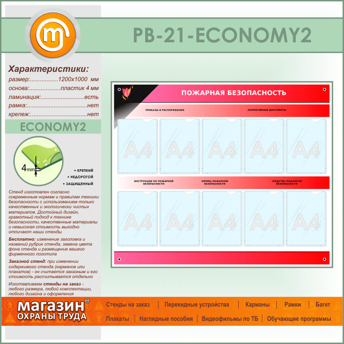 Стенд «Пожарная безопасность» с 10 карманами (PB-21-ECONOMY2) в Бердске купить