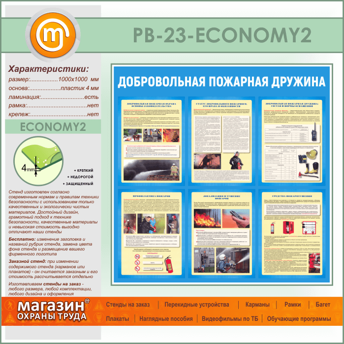 Стенд «Добровольная пожарная дружина» (PB-23-ECONOMY2) в Бердске купить