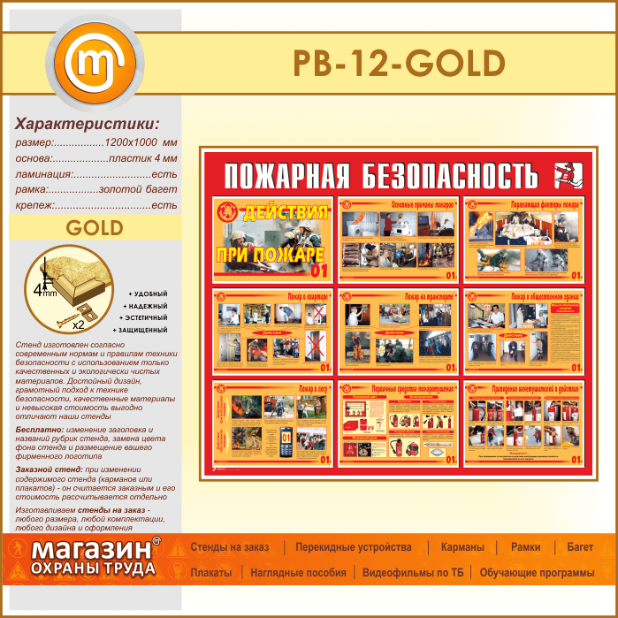 Стенд «Пожарная безопасность. Действия при пожаре» (PB-12-GOLD) в Бердске купить