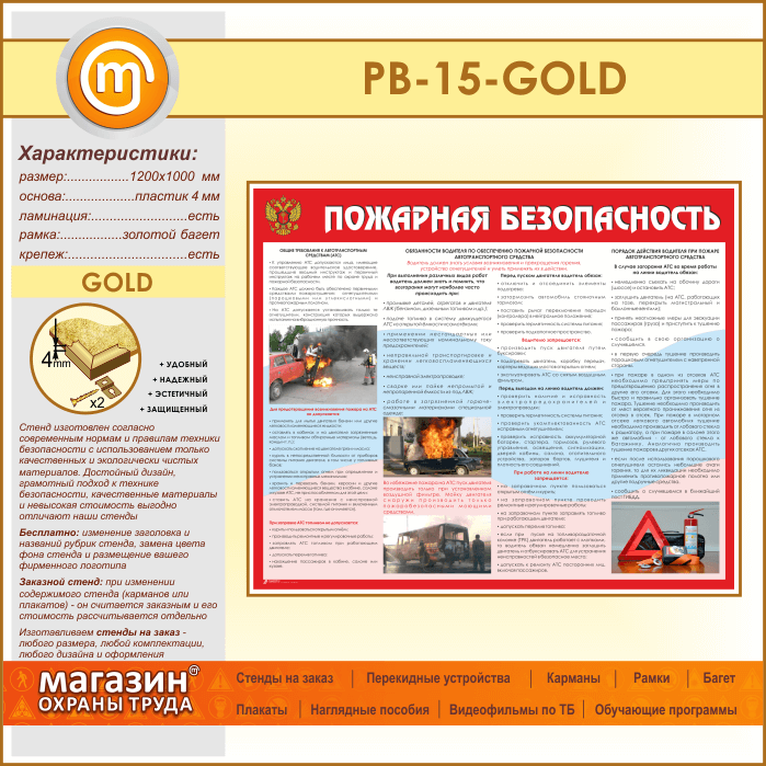 Стенд «Пожарная безопасность на автотранспорте» (PB-15-GOLD) в Бердске купить