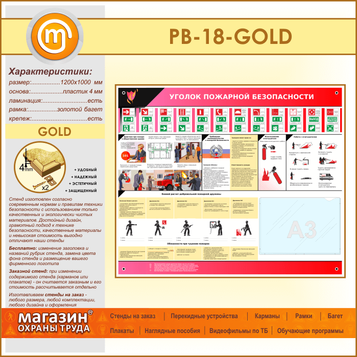 Стенд «Уголок пожарной безопасности» с карманом А3 формата (PB-18-GOLD) в Бердске купить